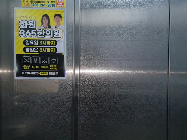 엘리베이터 내부 A4전단지 병원 한의원 "저렴한" 홍보 24시간 고정식 단독,독점광고 !!