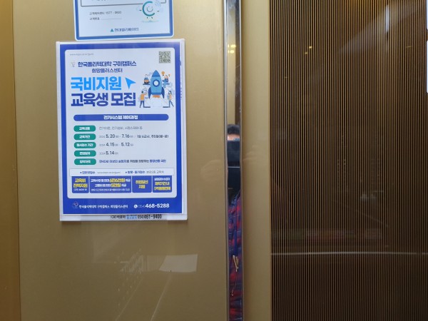 한국 폴리텍대학 아파트 엘리베이터 내부 및 현관 게시대 광고 개첨 사례 입니다..