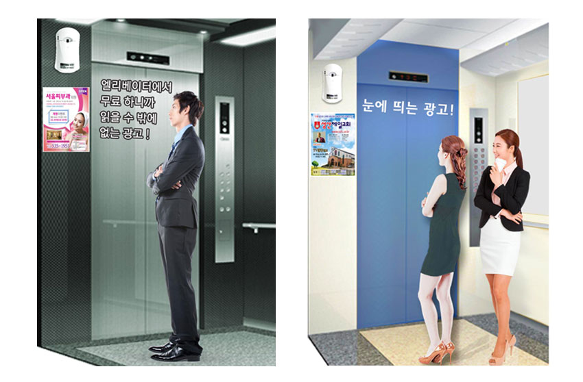아파트엘리베이터 광고는 아파트단지와 협약을 맺어 단지 안 엘리베이터 내부에 청향제 분사기를 무상 제공하여 친환경 유자향 등을 공급하면서, 그 내부에 A4크기 고정식 광고판을 설치하여 지역 내 아파트 주민에게 광고주의 홍보하고자 하는 내용을 극대화하여 알리는 신개념 광고 입니다!